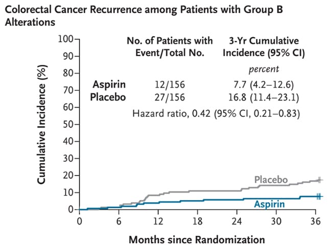 A daily, low dose of aspirin may significantly reduce the chances of colon and rectal cancer returning.